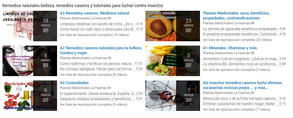 Temas relacionados con la salud en el canal YouTube Plantas Medicinales La Huertas.